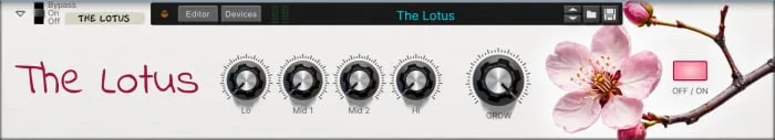 Lotus provides precise stereo processing across four frequency bands (Lo, Mid1, Mid2, Hi), which can be controlled independently or together—allowing for either controlled imaging or expansive, blooming spatial depth.