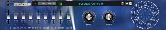The Solfeggio Generator combines nine individually generated tone frequencies into a single summing signal, allowing for precise mixing of classic Solfeggio tones.